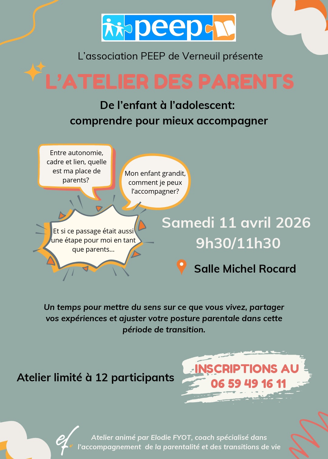 ​Intervenante : Elodie FYOT, coach spécialisée dans l’accompagnement de la parentalité et des transitions de vie.