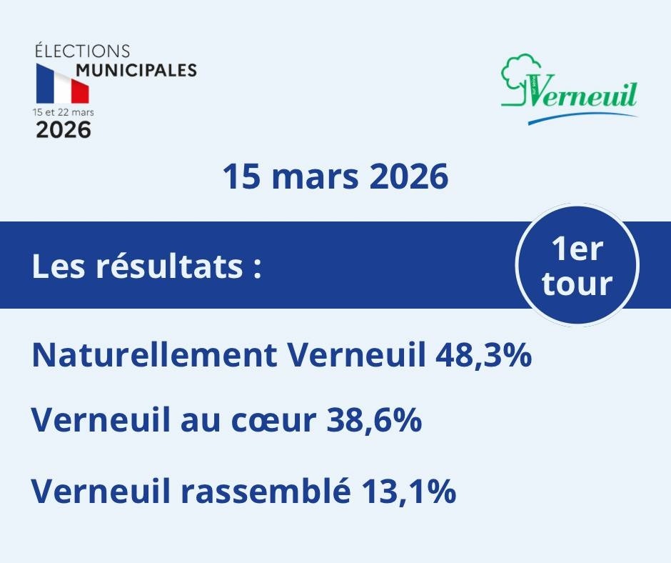 Voici les chiffres du premier tour de scrutin des élections municipales de Verneuil-sur-Seine du 15 mars 2026.